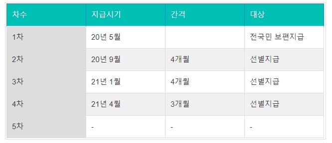 20년 5월 첫 재난지원금 1차때부터 4차때까지 간격이 3~4개월 정도였는데요. 이번 5차 재난지원금도 4차 지급 3~4개월 후 인 9월에 지급예정입니다.