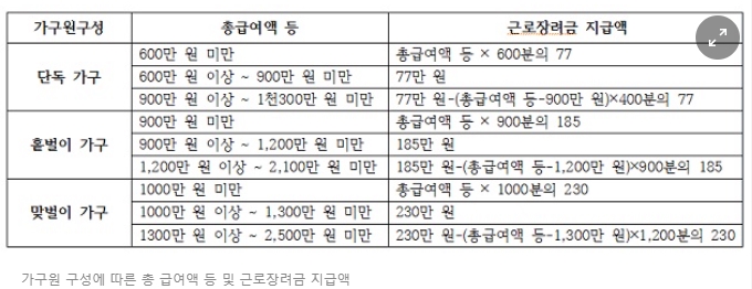 정부는 저소득 가정의 근로의욕을 높이고 자녀 양육 지원을 위해, 소득·재산 요건을 충족하면 근로·자녀장려금을 지급하기로 했습니다.