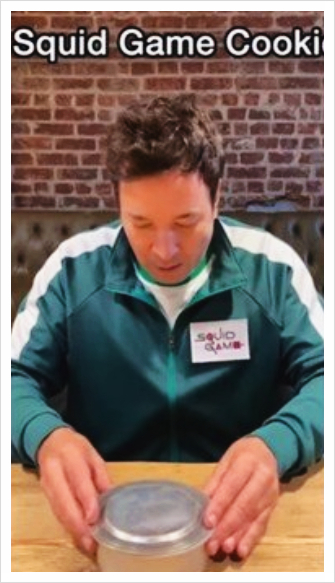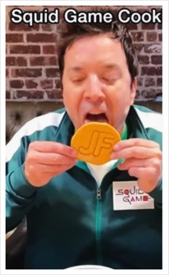 해당 영상에서 지미 팰런은 '오징어 게임'에 등장하는 달고나를 직접 만들었습니다. 그리고 그 달고나에 자신의 이름 이니셜인 'JF'를 새겨넣었습니다.