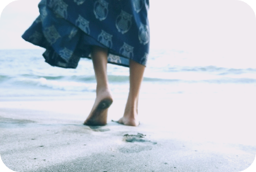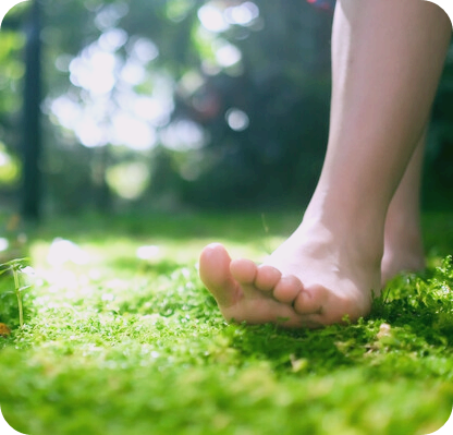 맨발로걷기 : 잔디, 흙, 모래, 돌 위와 같은 자연 표면 위를 맨발로 걷습니다.