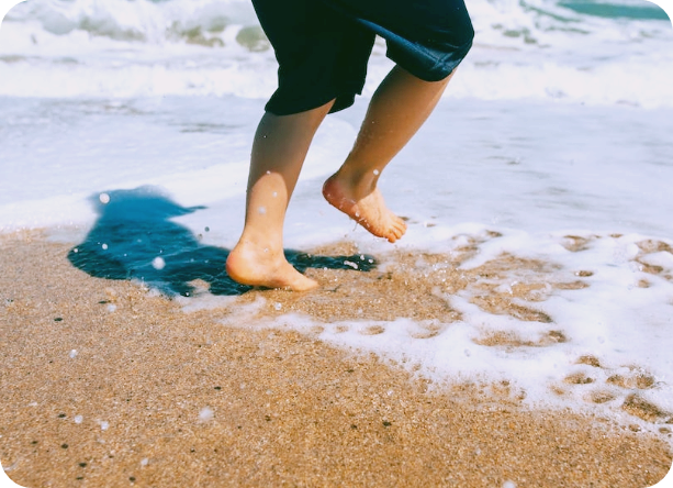 맨발로걷기 : 잔디, 흙, 모래, 돌 위와 같은 자연 표면 위를 맨발로 걷습니다.