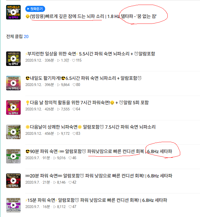 낮잠 용 숙면 뇌파 소리가 올려져있습니다.