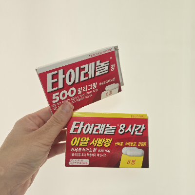 타이레놀 (500mg) 정제: 속방제로 일상적인 통증 완화에 적합합니다. 15분만에 효과를 볼 수 있으며 지속시간은 4시간 정도 입니다.