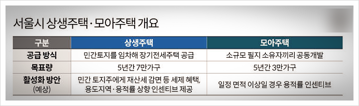 오 시장의 주요 공약이었던 '상생주택과 모아주택'을 구체화하는 방안도 마련될 것으로 보입니다.